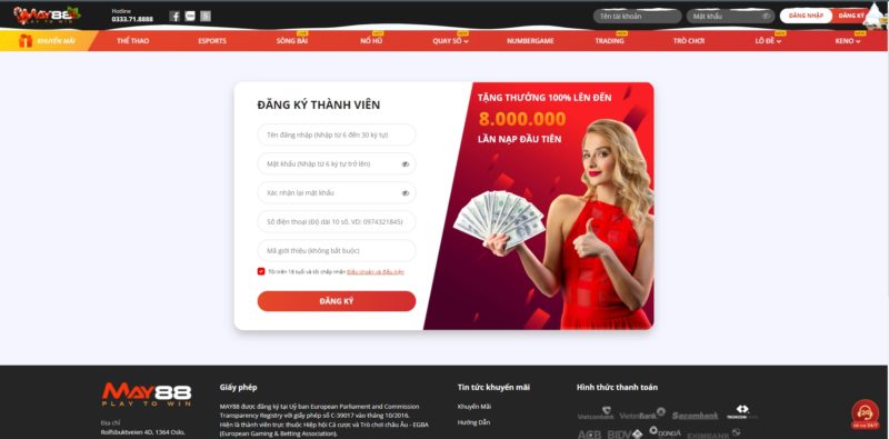 Tham gia cá cược May88, với các bước đăng ký thành viên đơn giản như sau: